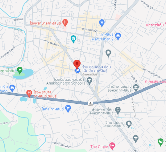 286-288 ( ไฟแดง.รร.กสส) ถ.ภิรมย์ ต.กาฬสินธุ์ อ.เมืองกาฬสินธุ์ จ.กาฬสินธุ์ 46000 ( เบอร์ 1 โทร : 096-148-2293 ) ( เบอร์ 2 โทร : 083-332-5657 )